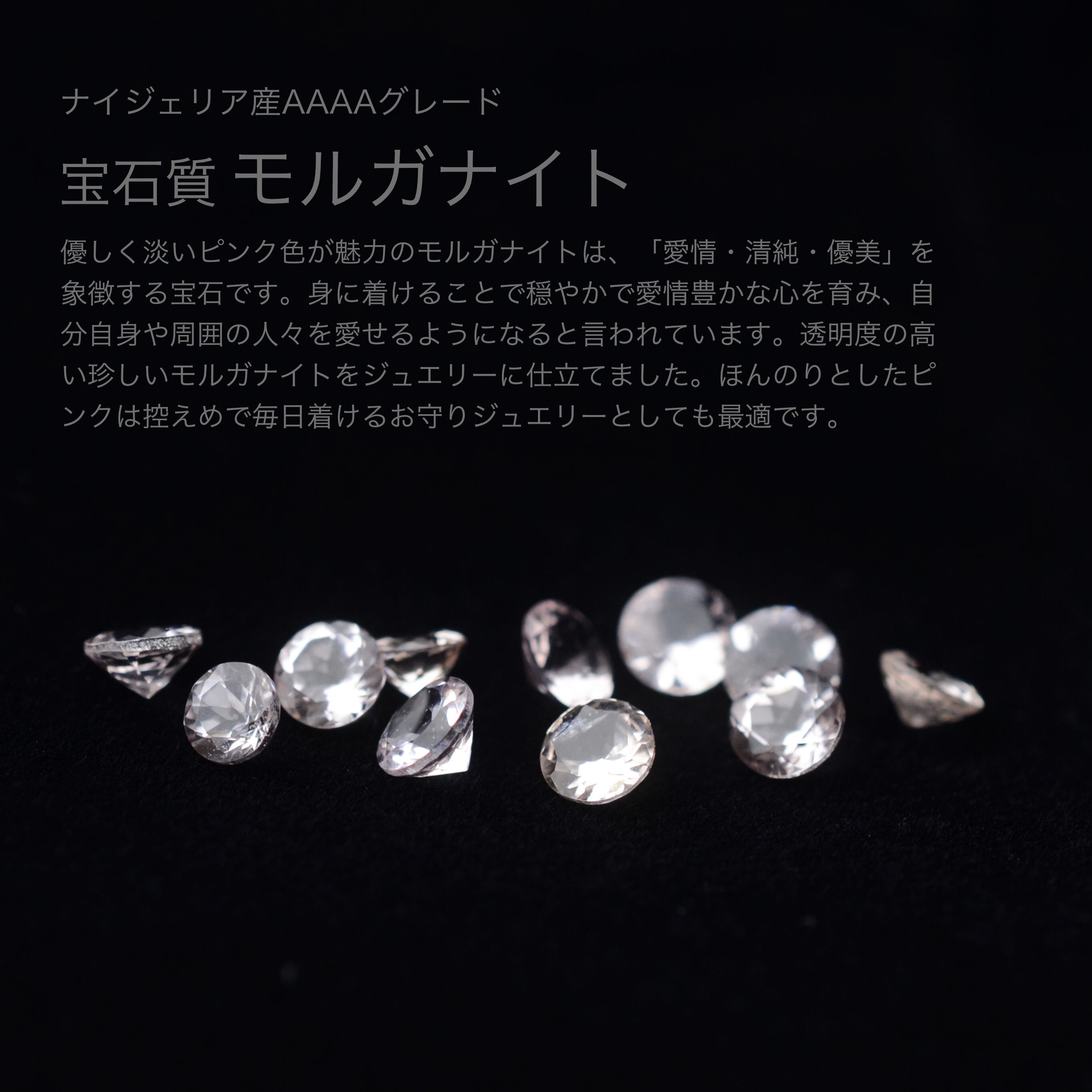 透明度の高い珍しいモルガナイトをジュエリーに仕立てました。ほんのりとした桜色は控えめで毎日着けるお守りジュエリーとしても最適です。