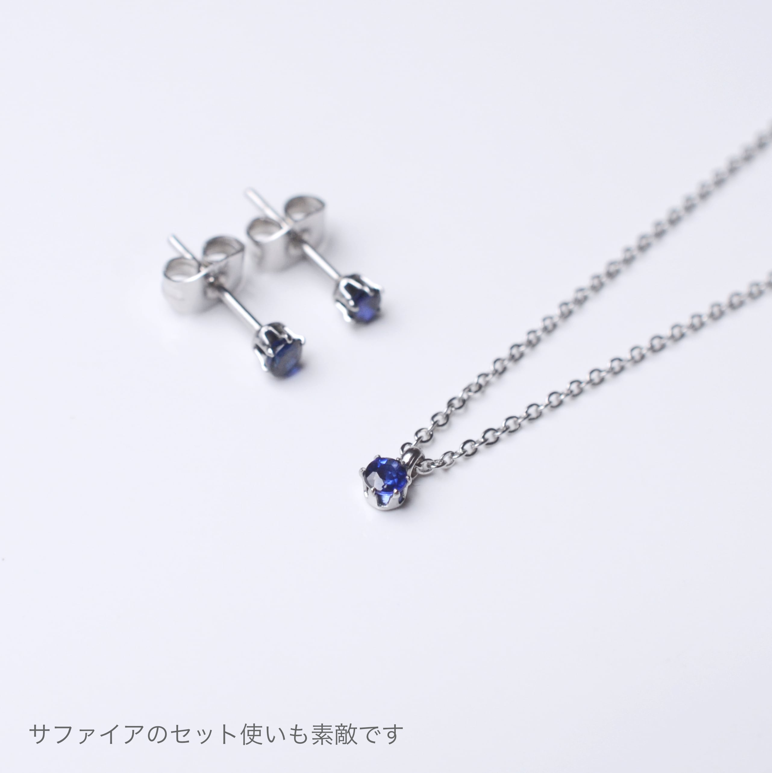 つけっぱなしOK!サファイア 一粒ネックレス AAA 金属アレルギー サージカルステンレス スキンネックレス スキンジュエリー ブルー