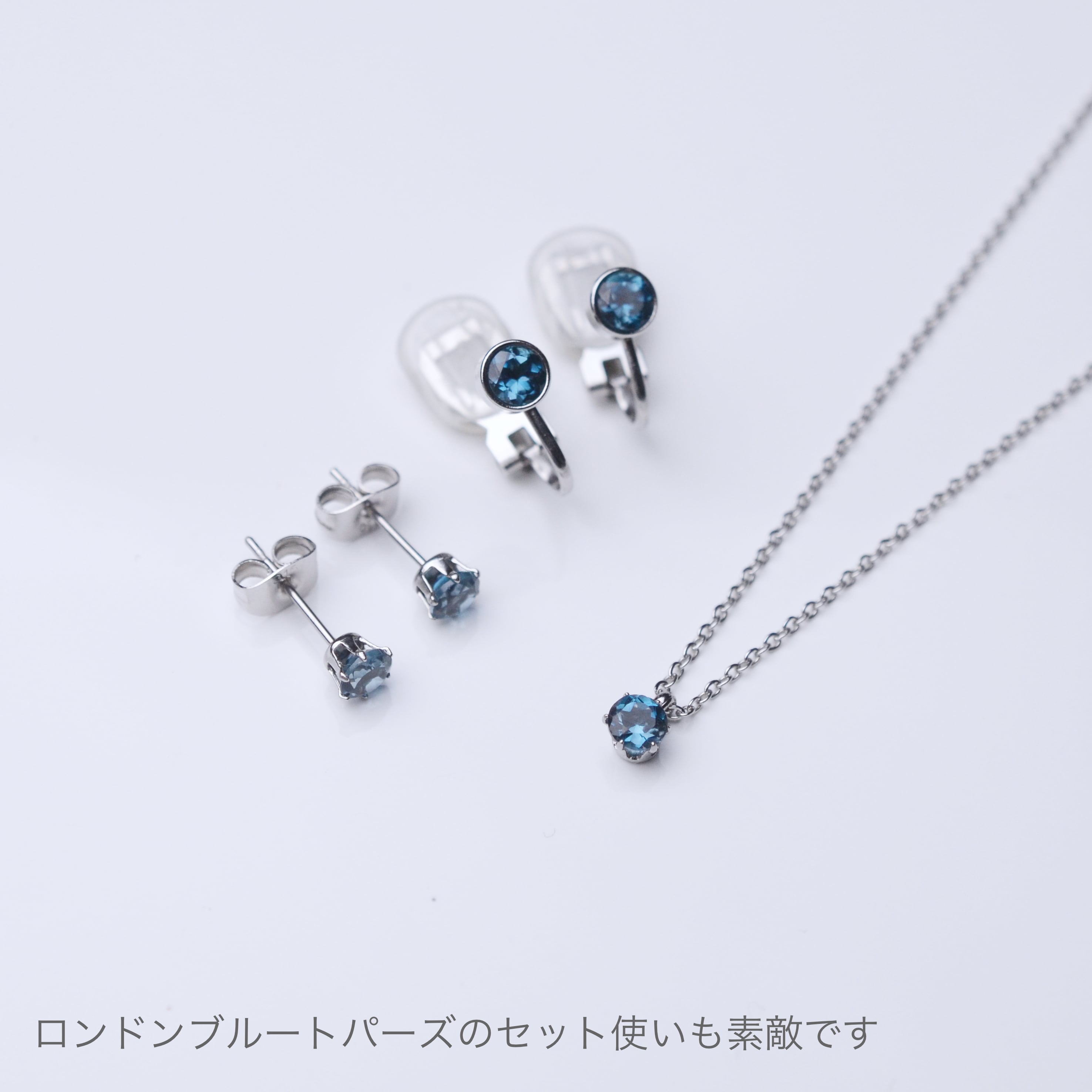 ロンドンブルートパーズの鮮やかすぎないシックな色味は、カジュアルはもちろん、オフィススタイルからフォーマルなシーンまで、日常にすっと溶け込みながらも、格調高い存在感を放ちます。つけていることを忘れるほど軽く、肌に優しいストレスフリーのスキンジュエリーです。
