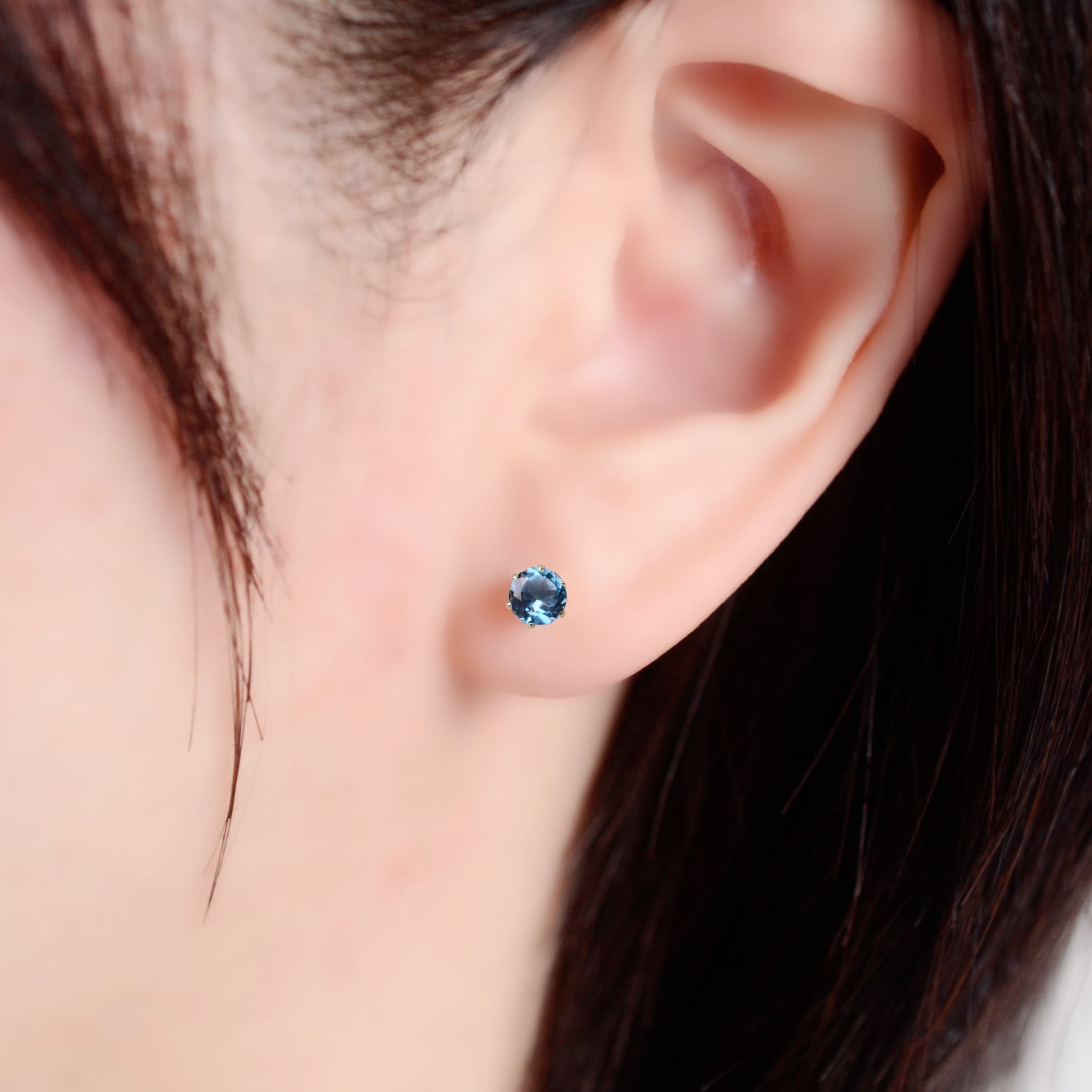 つけっぱなしOK! ロンドンブルートパーズ スタッドピアス 宝石質AAA サージカルステンレス 金属アレルギー スキンピアス