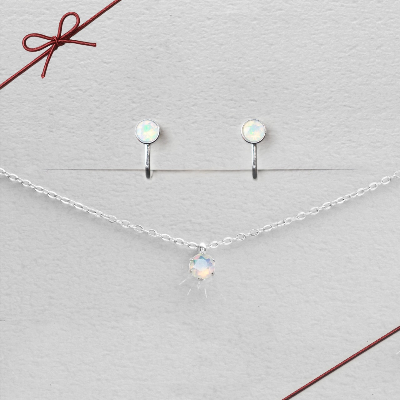 ファセットカットの透明感のあるオパールは、優雅でありながら控えめでもあり上品な印象です。